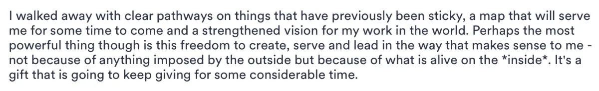 Whilst these types of sessions have a feel good effect, they do not support tangible transformation.